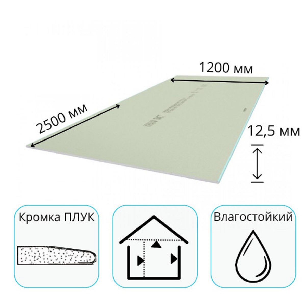 Плита г/к KNAUF 12,5*1200*2500 влагостойкая шт.