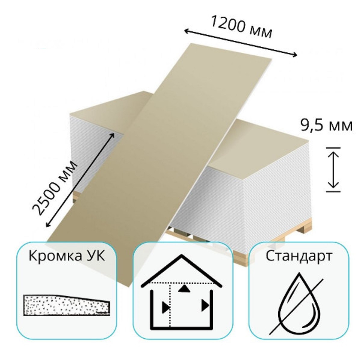 Гипсокартон влагостойкий 1,2х2,5м 9,5мм шт.