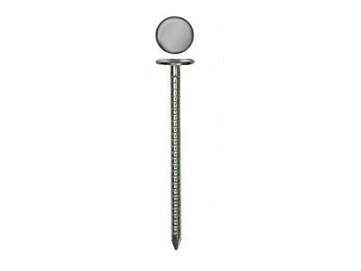 Шиферный гвоздь представляет из себя традиционный строительный гвоздь, дополнительно укомплектованный широкой оцинкованной шляпкой-колпачком, который обжимается вокруг головки гвоздя. Данная конструкция позволяет не деформировать лист шифера при его креплении, а широкая оцинкованная шляпка обеспечивает непопадание влаги внутрь конструкции. Диаметр стержня гвоздя — 5 мм, а его длина — 120 мм. В одной упаковке — 1 кг гвоздей (около 48 шт).